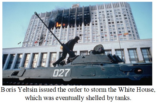 In 1993, about thirty two years ago in MOSCOW, Russian President Boris Yeltsin ordered tanks and airborne troops to shell and storm the “White House,” the Russian Parliament (Supreme Soviet) building, to suppress the opposition trying to impeach and remove him – a landmark turning point in Russia’s failure to develop democracy.